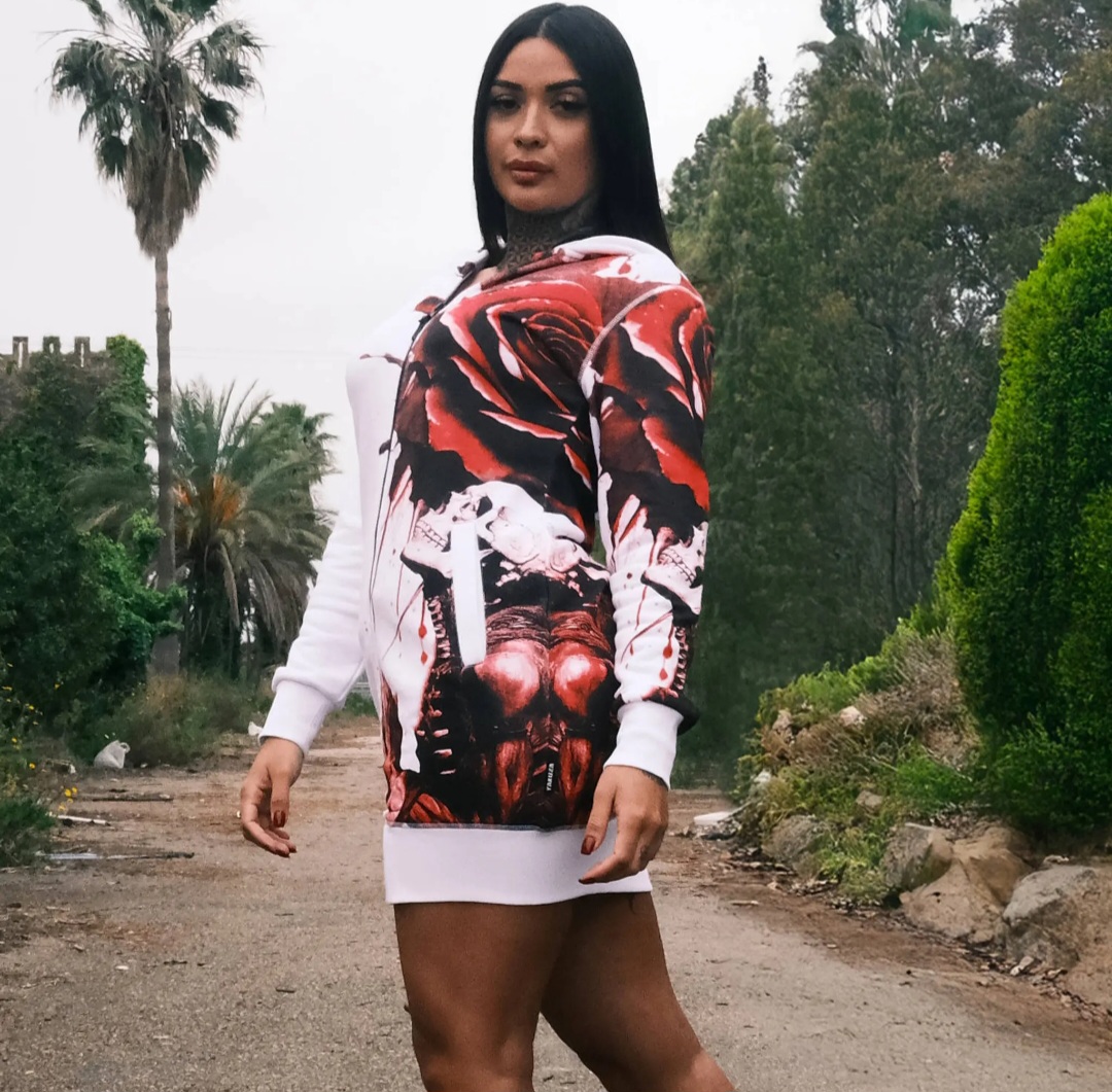 YAKUZA PRAY Kapuzenjacke für Damen. Lang geschnittene Kapuzenjacke mit lässiger Passform: Nicht zu eng, nicht zu weit, genau richtig. Diese Kapuzenjacke ist ein echtes Must-have und präsentiert sich mit zwei Taschen, einer Kapuze mit Kordelzug sowie einem Rippmuster an Saum und Bündchen.